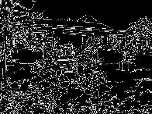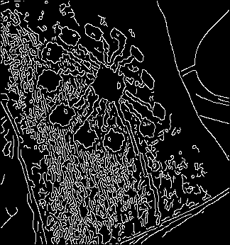 In following examples, we show that rolling guidance filter can be used to improve the edge detection results of classic Canny algorithm. By removing small structures from the image with our scale-aware filter, Canny algorithm performs better edge extraction and generates more reasonable results, less influenced by noise and small turbulence. For the Canny algorithm, the parameter is the default one in MATLAB.